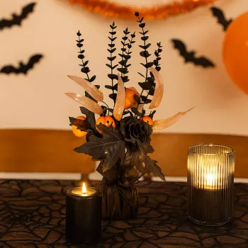 Halloween Artificial Pumpkin Bouquet with Eucalyptus Leaves 16.5in