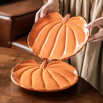 Pumpkin-Shaped Ceramic Plate – Irregular Salad & Steak Plate for Home Dining