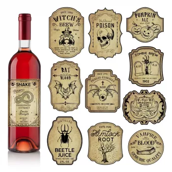 12pcs Halloween Red Wine Bottle Stickers – Ghost Festival Party Home Decor