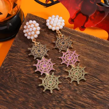 Halloween Spider Web Pearl Dangle Earrings for Women – Festive Costume Jewelry